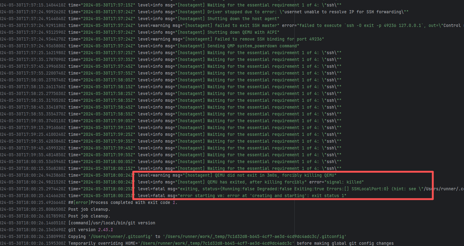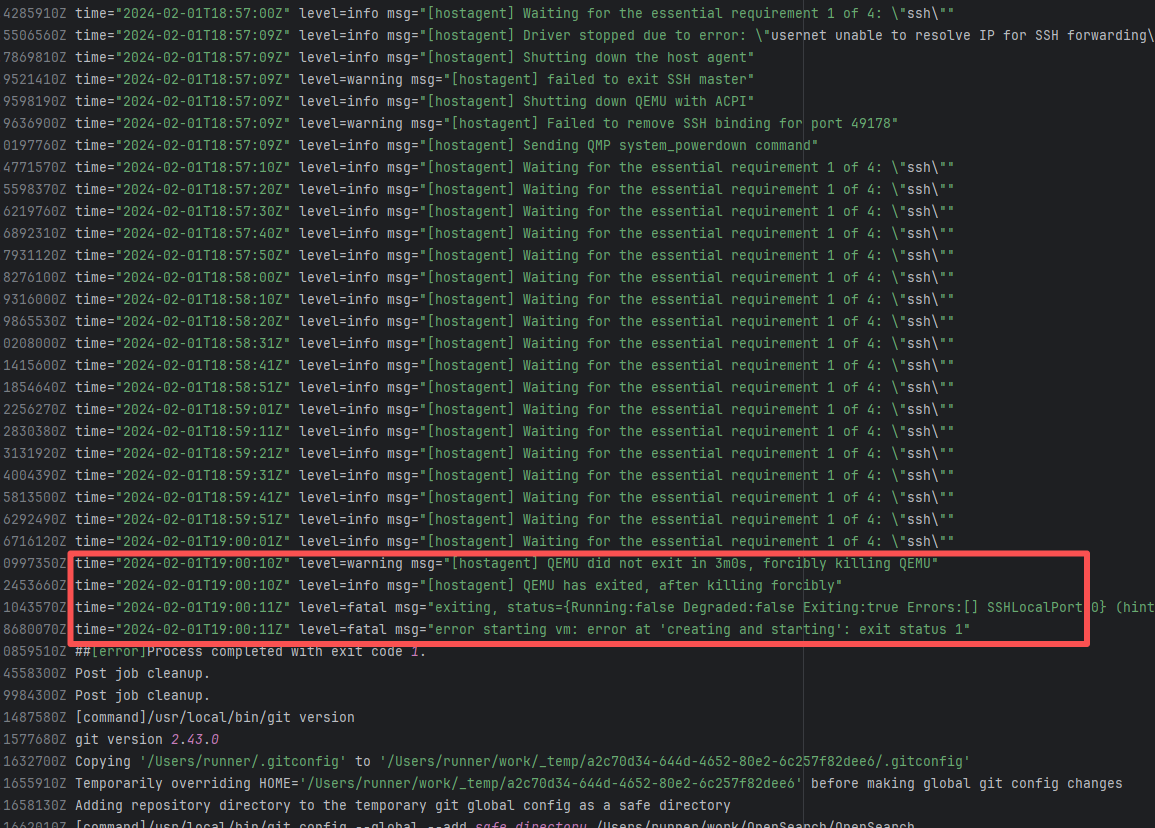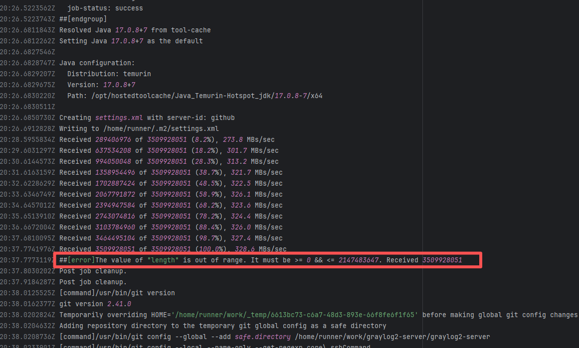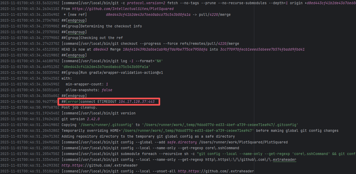 Error: connect ETIMEDOUT 104.17.128.37:443 indicates that the execution machine attempted to connect to Git Root Cause: The download operation was successfully executed after a rerun. |