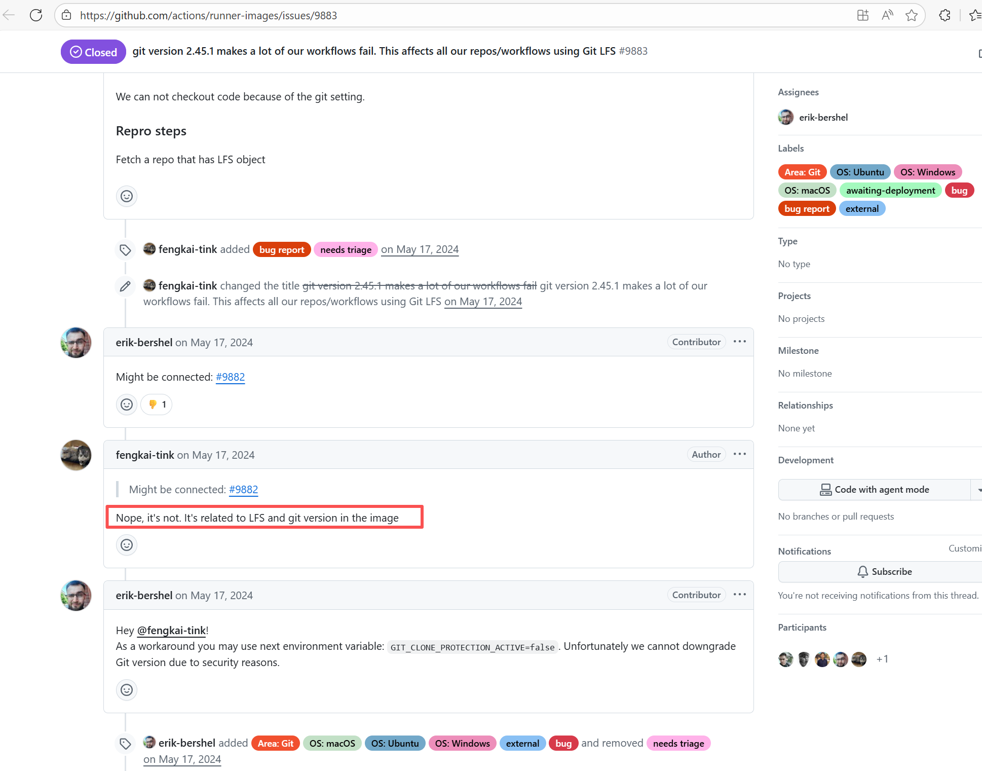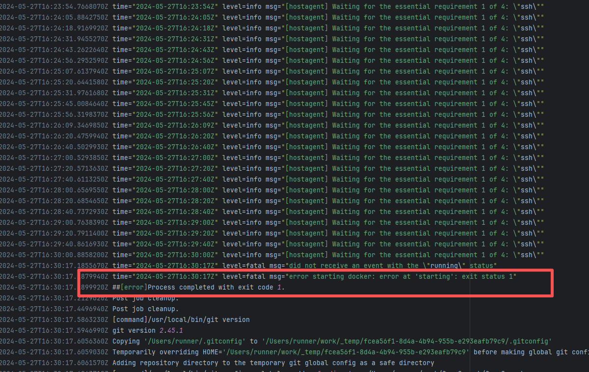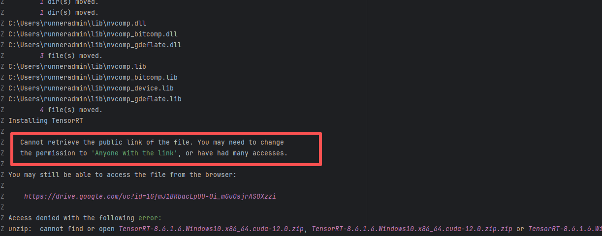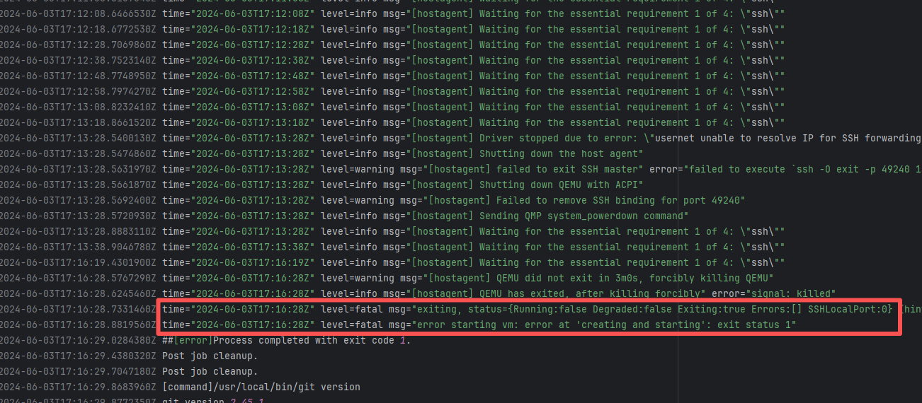 Error: connect ETIMEDOUT 104.17.128.37:443 indicates that the execution machine attempted to connect to Git Root Cause: The download operation was successfully executed after a rerun. |