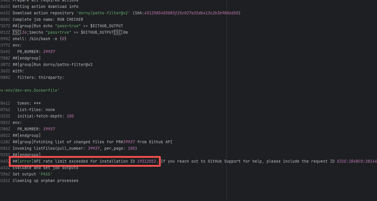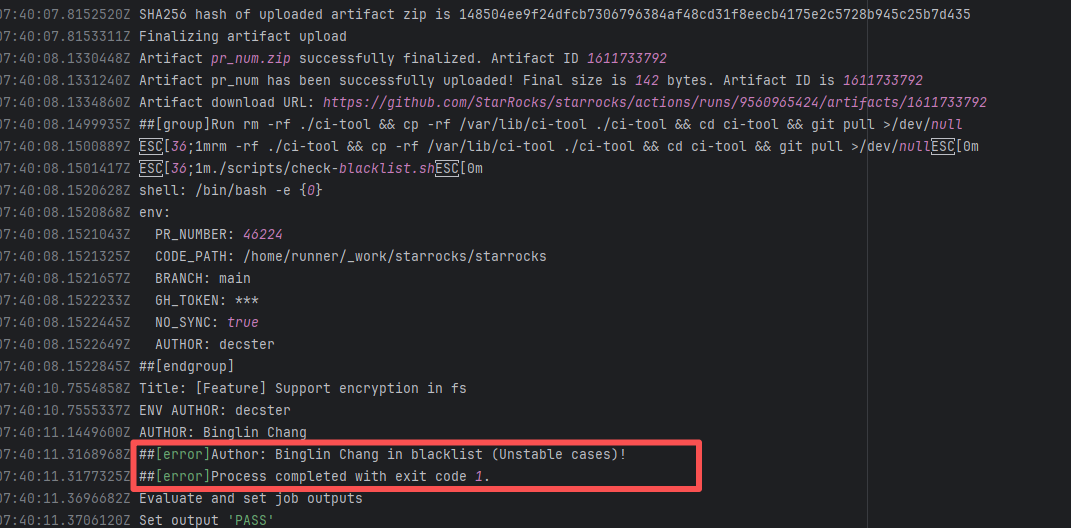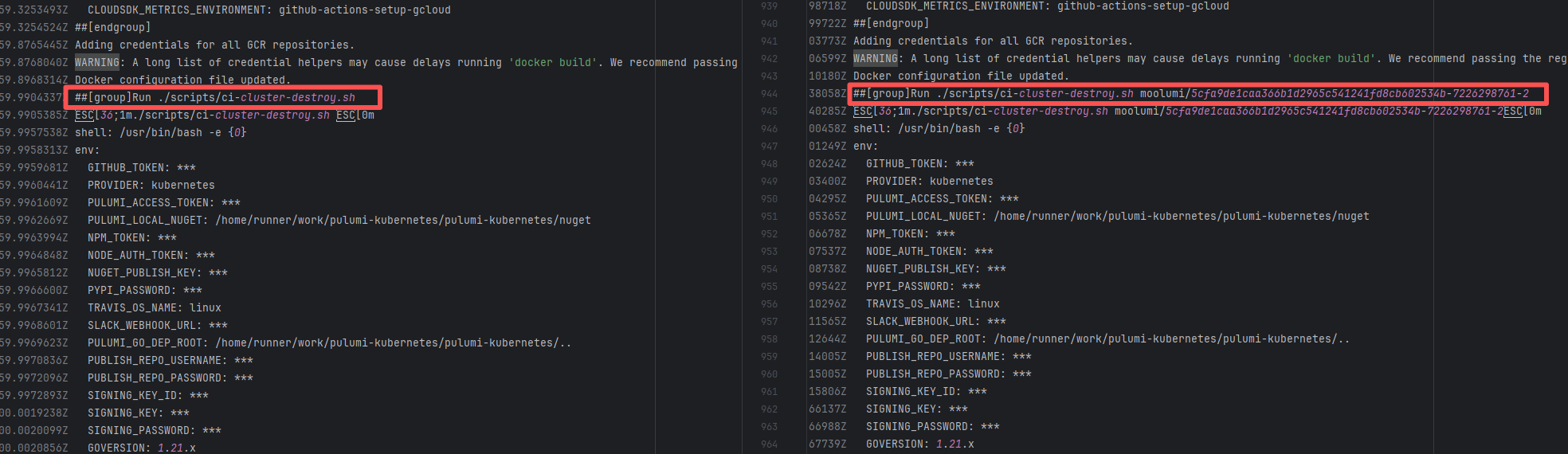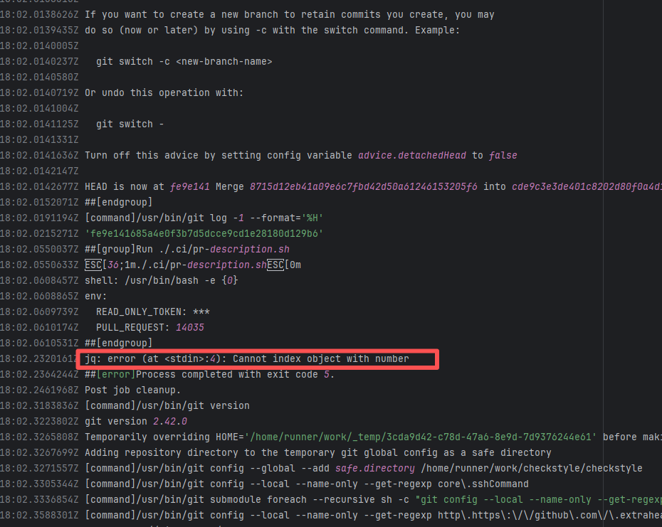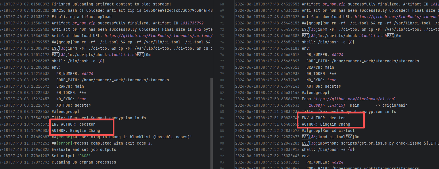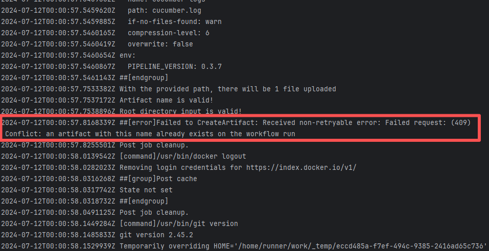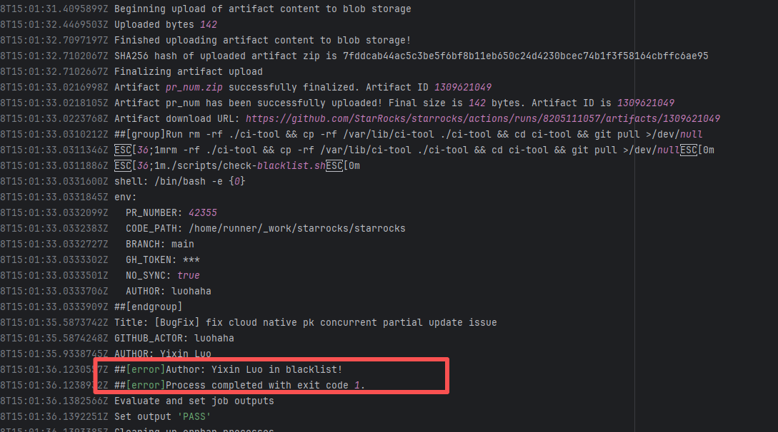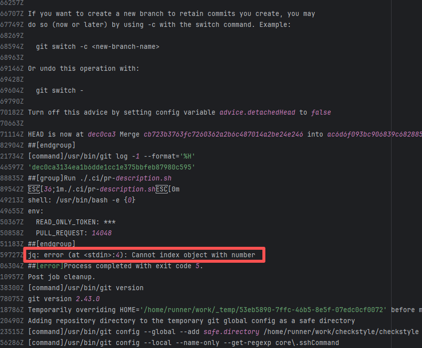 Error: The log error shows that the script referenced an undefined variable during execution. Root Cause: Comparing the success and failure logs reveals that the error is caused by outdated action commands, and this error is sporadic. The command in a certain step referenced the output of a previous step, echo '::set-output name=stack-name::${{ env.PULUMI_TEST_OWNER }}/${{ github.sha }}-${{ github.run_id }}-${{ github.run_attempt }}', but ::set-output has been deprecated. The echo command itself will still execute successfully (exit code = 0), so the workflow will not fail directly because of it, but the output of that step (${{ steps.id.outputs.xxx }}) will be empty, causing an error or logic error when referenced in subsequent steps. Succeeded after rerun. |