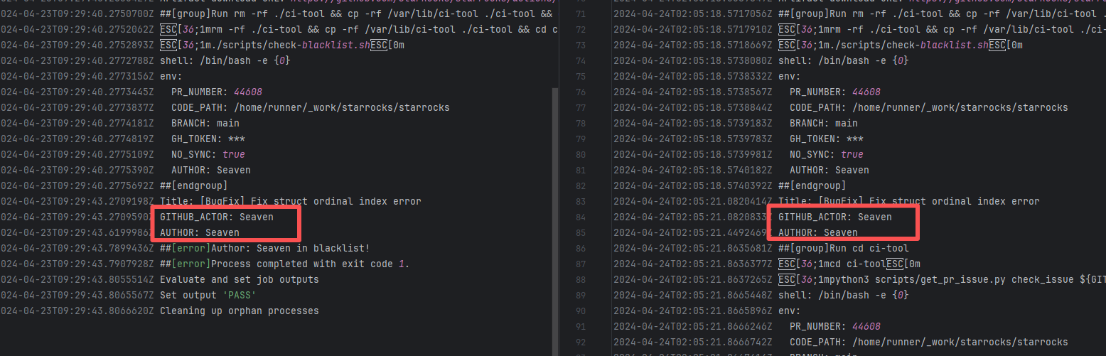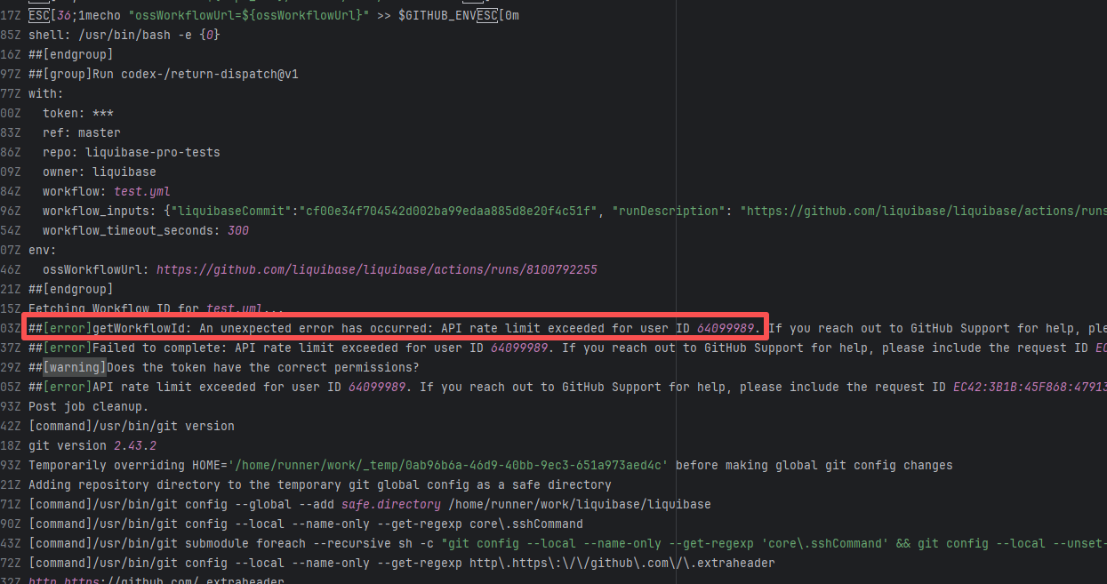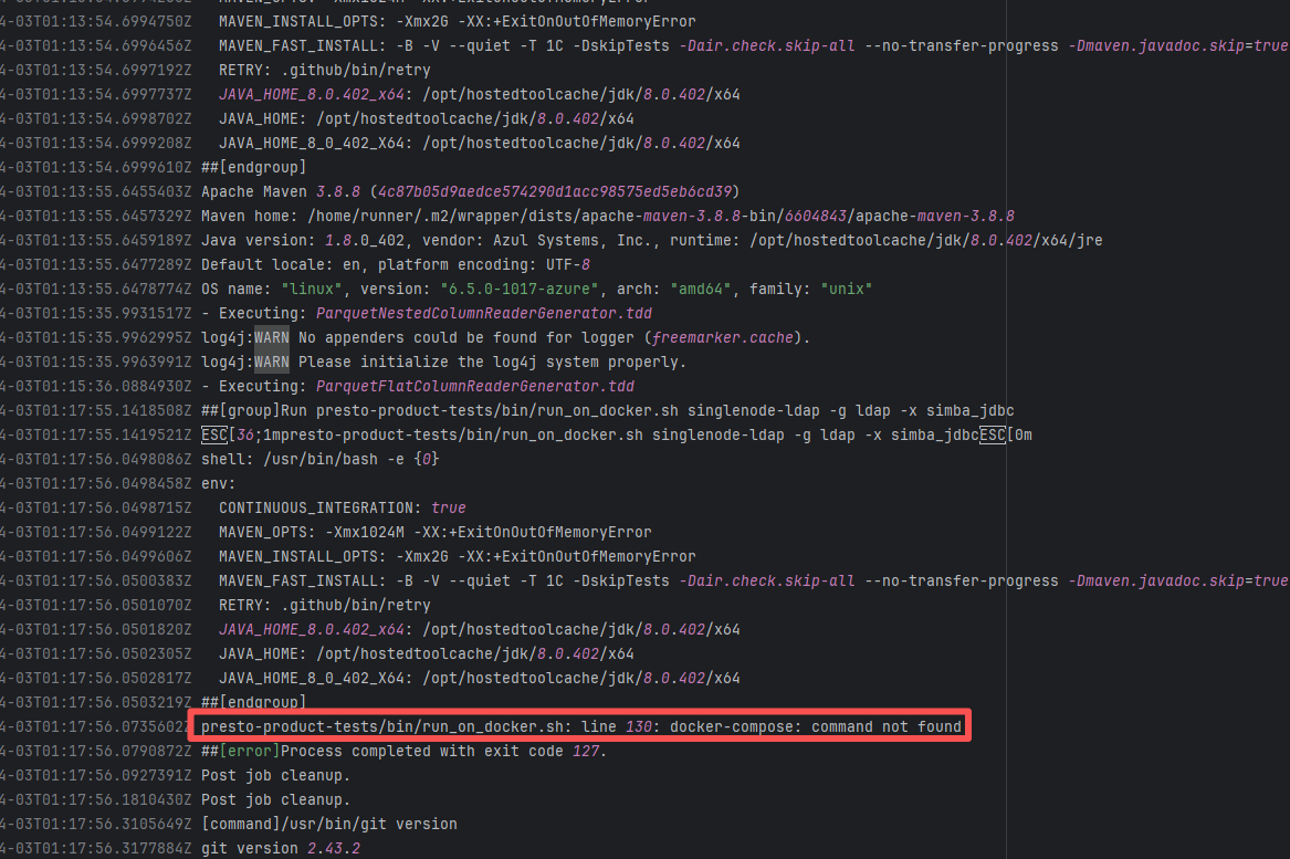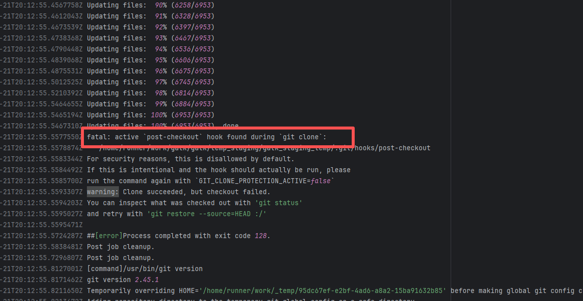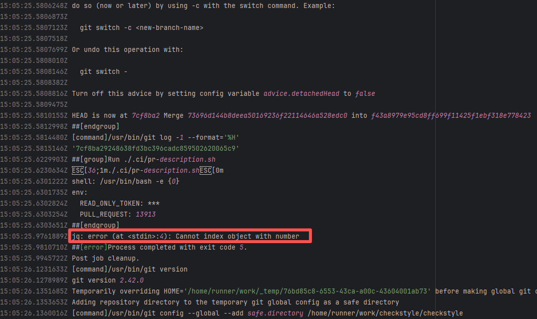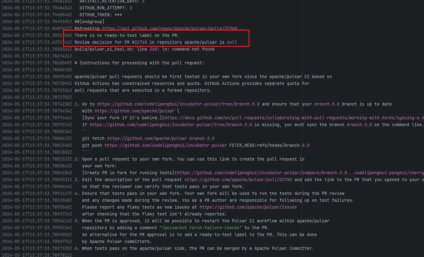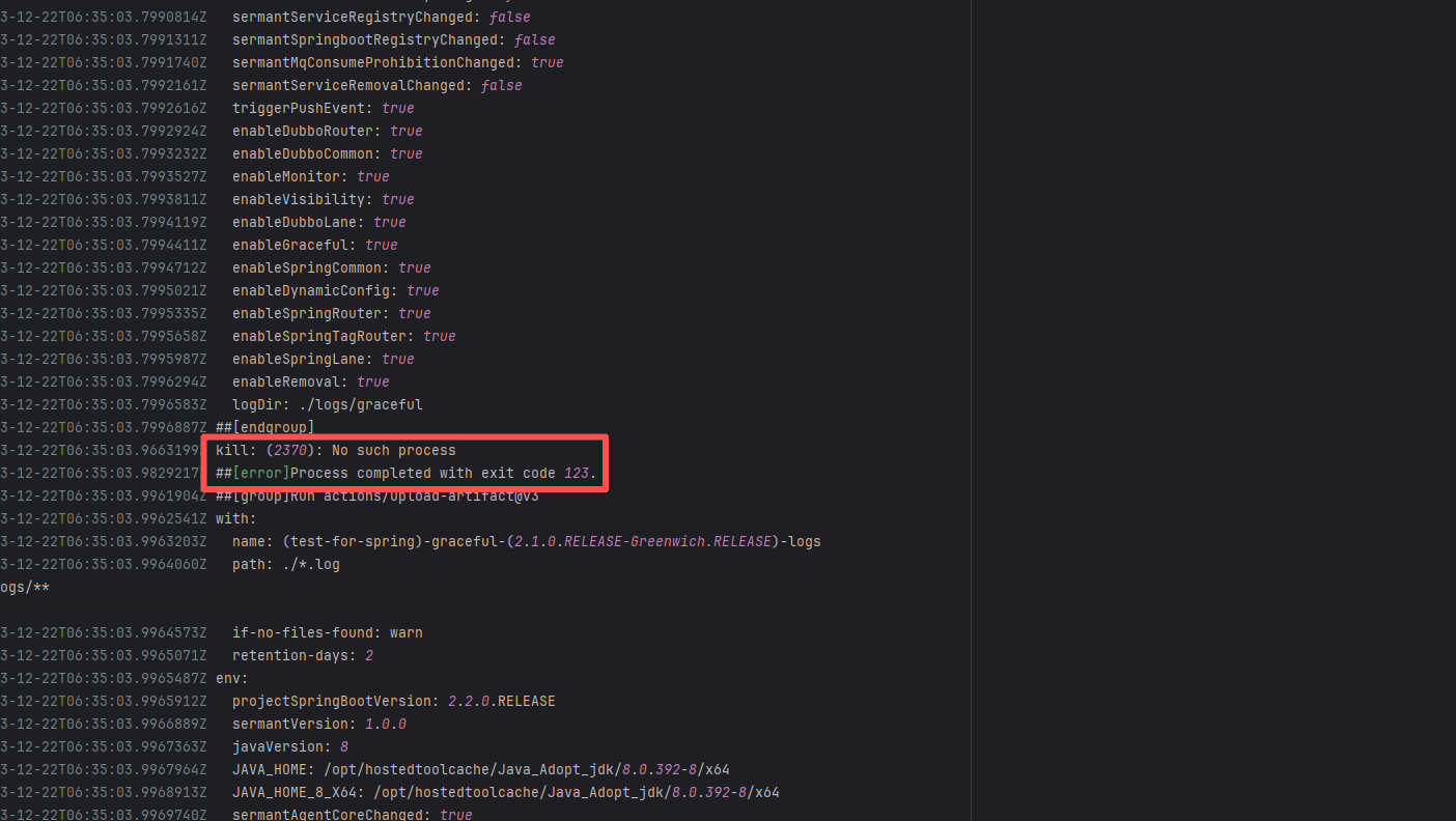 Error: The log error shows that the script referenced an undefined variable during execution. Root Cause: Comparing the success and failure logs reveals that the error is caused by outdated action commands, and this error is sporadic. The command in a certain step referenced the output of a previous step, echo '::set-output name=stack-name::${{ env.PULUMI_TEST_OWNER }}/${{ github.sha }}-${{ github.run_id }}-${{ github.run_attempt }}', but ::set-output has been deprecated. The echo command itself will still execute successfully (exit code = 0), so the workflow will not fail directly because of it, but the output of that step (${{ steps.id.outputs.xxx }}) will be empty, causing an error or logic error when referenced in subsequent steps. Succeeded after rerun. |