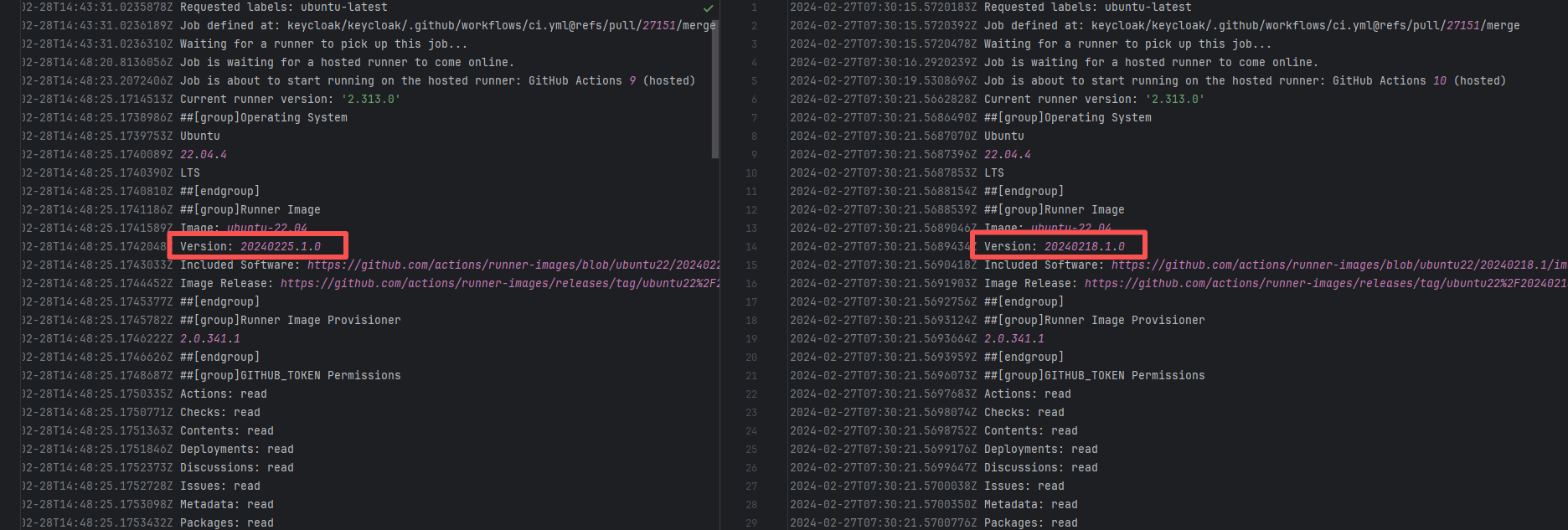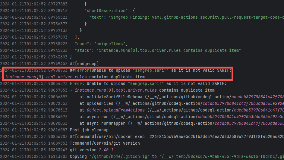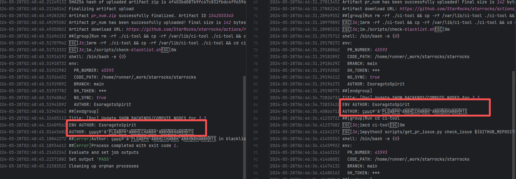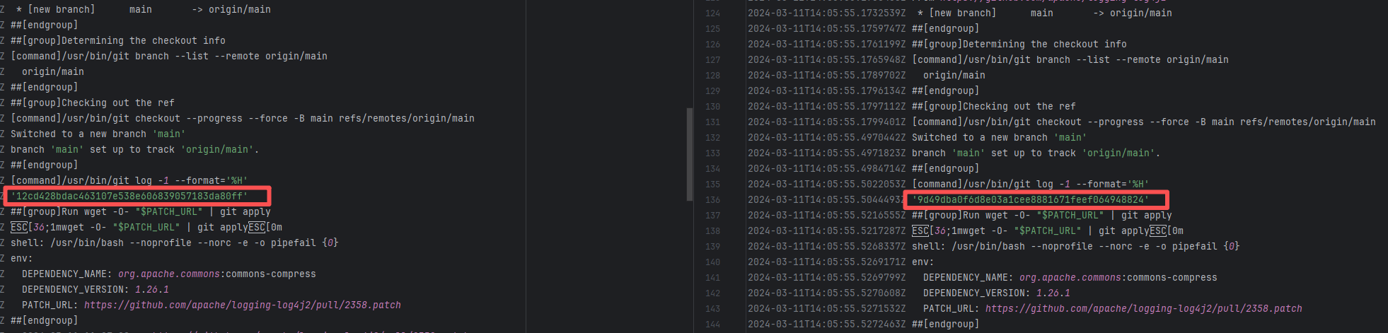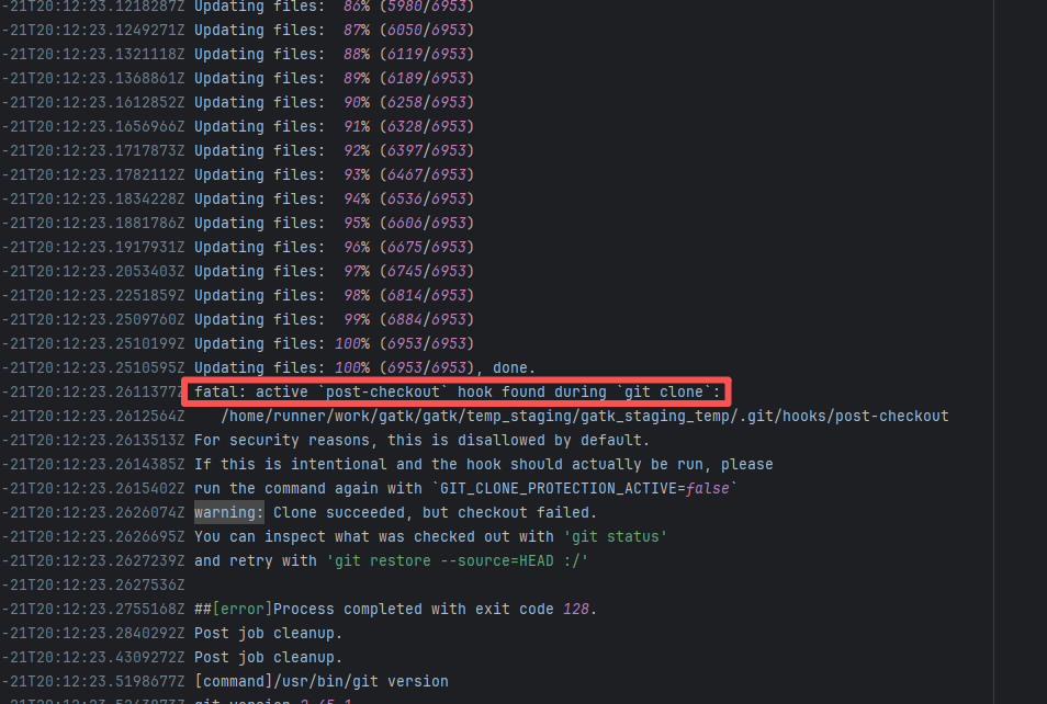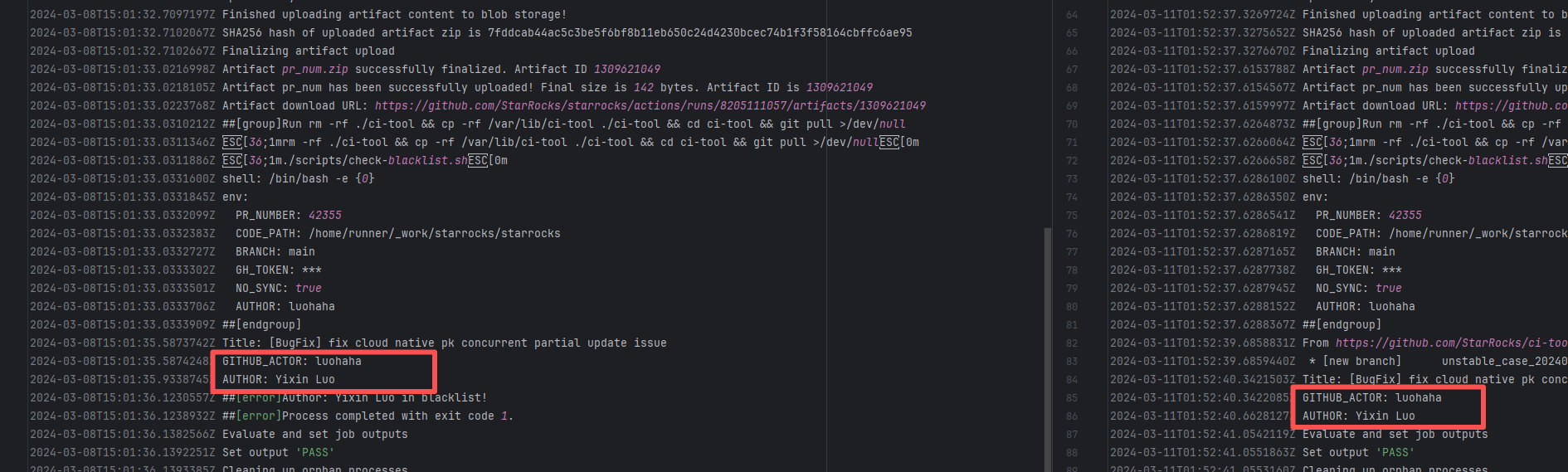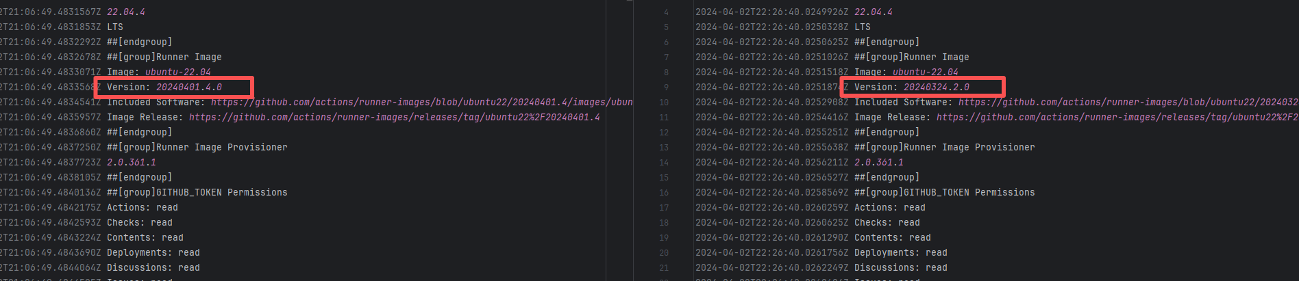 Error: The log error shows that the script referenced an undefined variable during execution. Root Cause: Comparing the success and failure logs reveals that the error is caused by outdated action commands, and this error is sporadic. The command in a certain step referenced the output of a previous step, echo '::set-output name=stack-name::${{ env.PULUMI_TEST_OWNER }}/${{ github.sha }}-${{ github.run_id }}-${{ github.run_attempt }}', but ::set-output has been deprecated. The echo command itself will still execute successfully (exit code = 0), so the workflow will not fail directly because of it, but the output of that step (${{ steps.id.outputs.xxx }}) will be empty, causing an error or logic error when referenced in subsequent steps. Succeeded after rerun. |