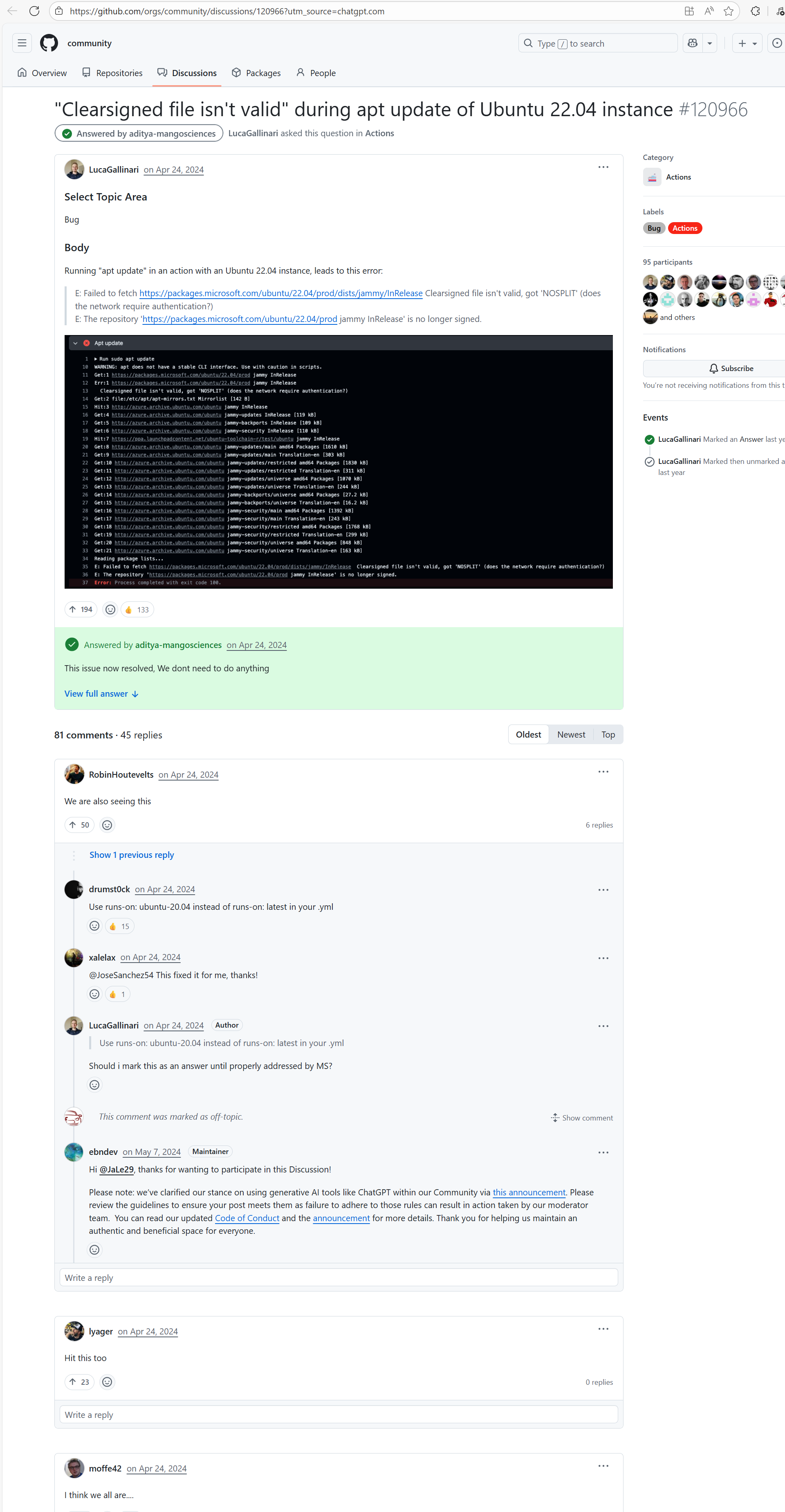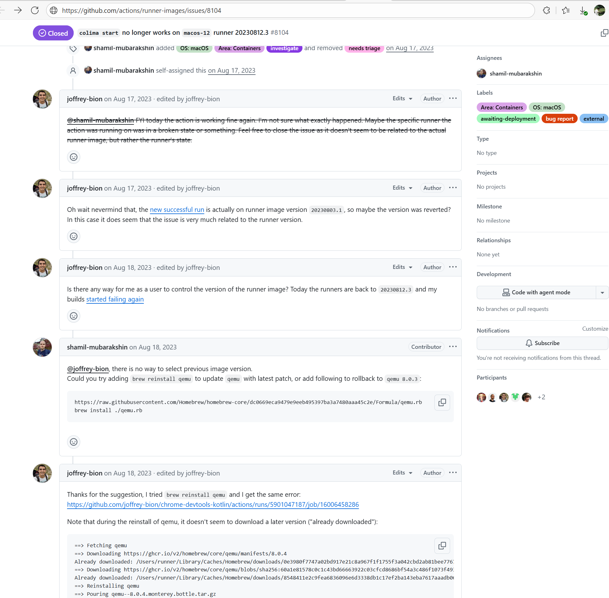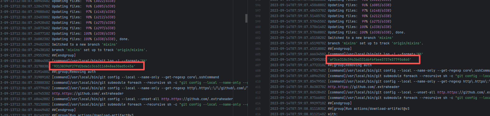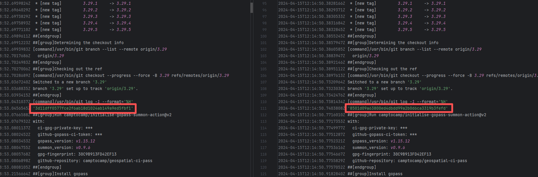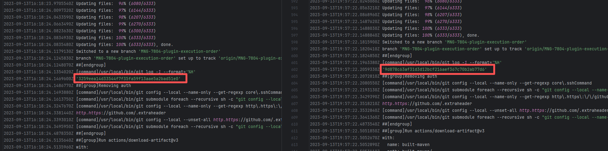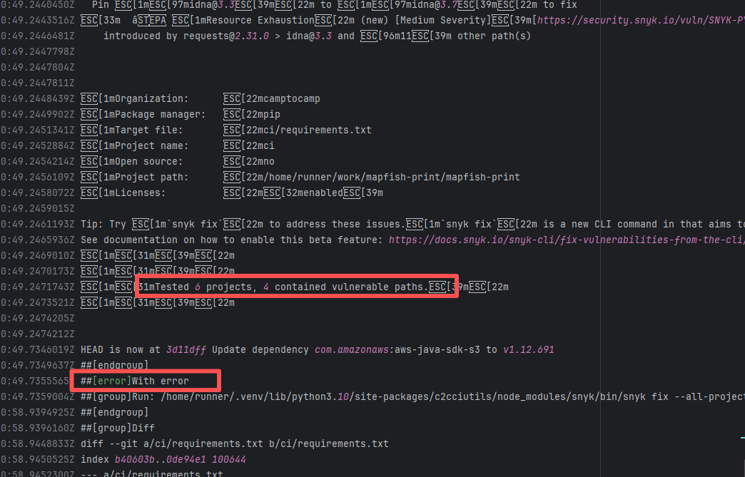 Error: The log error shows that the script referenced an undefined variable during execution. Root Cause: Comparing the success and failure logs reveals that the error is caused by outdated action commands, and this error is sporadic. The command in a certain step referenced the output of a previous step, echo '::set-output name=stack-name::${{ env.PULUMI_TEST_OWNER }}/${{ github.sha }}-${{ github.run_id }}-${{ github.run_attempt }}', but ::set-output has been deprecated. The echo command itself will still execute successfully (exit code = 0), so the workflow will not fail directly because of it, but the output of that step (${{ steps.id.outputs.xxx }}) will be empty, causing an error or logic error when referenced in subsequent steps. Succeeded after rerun. |