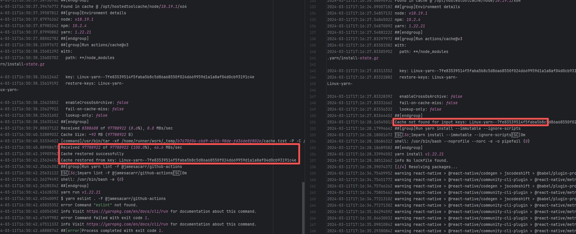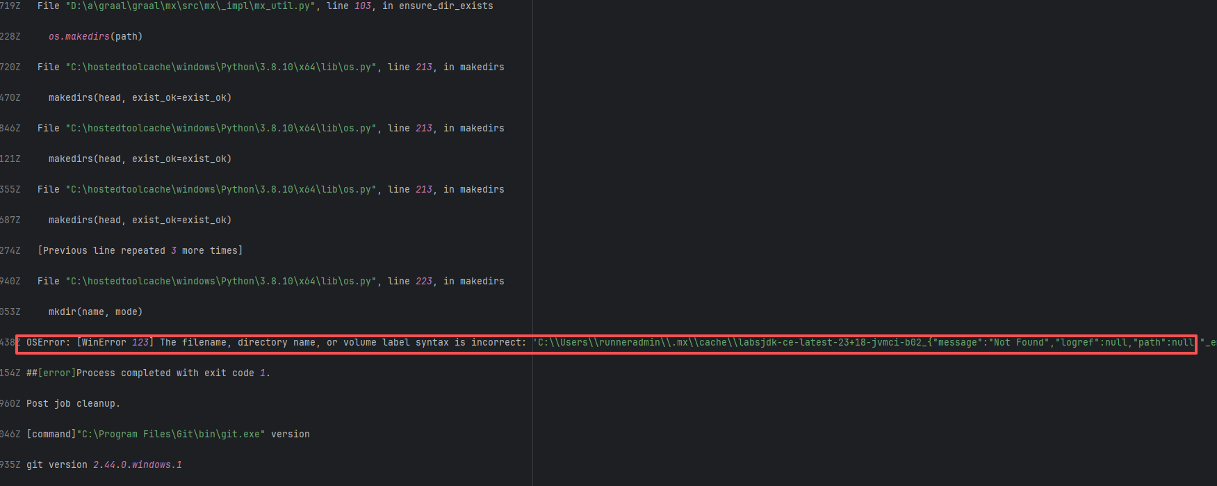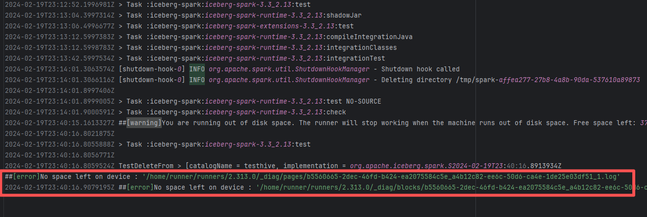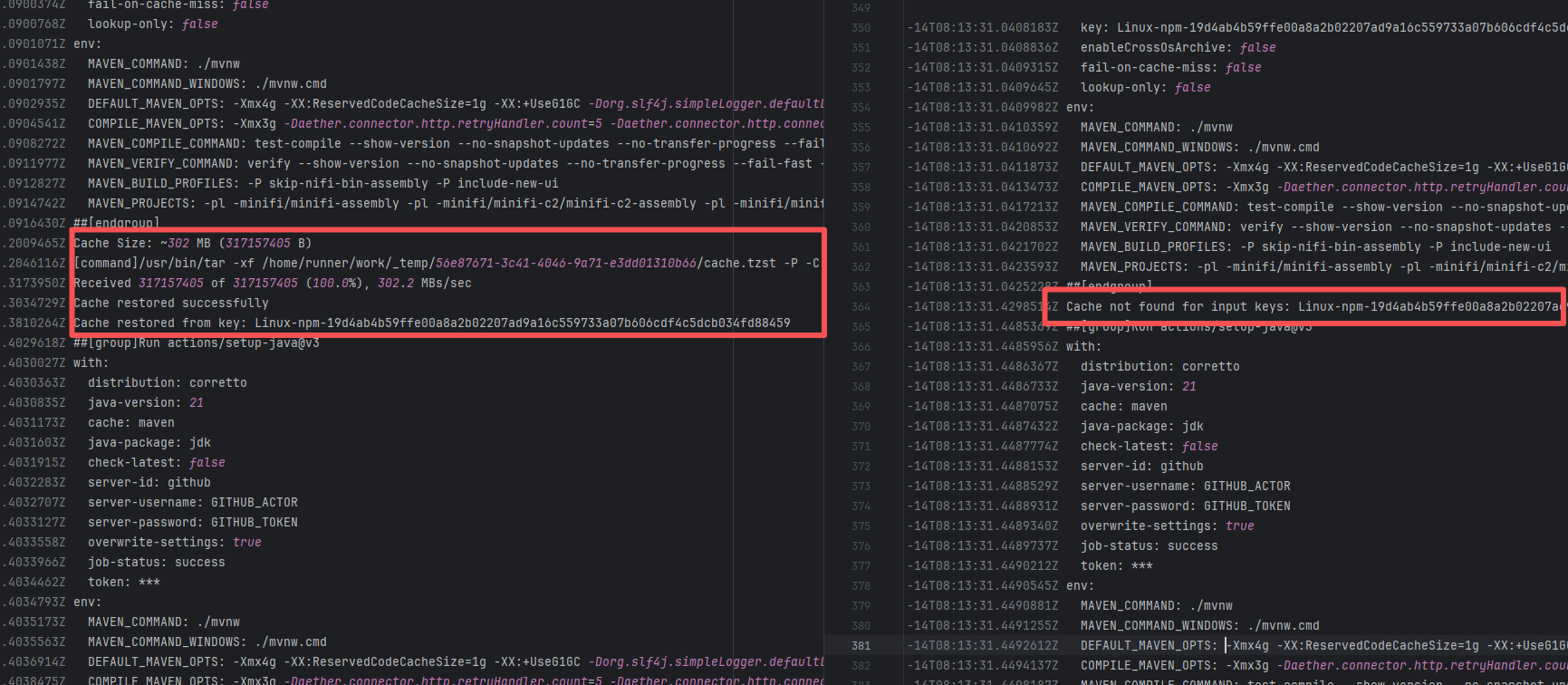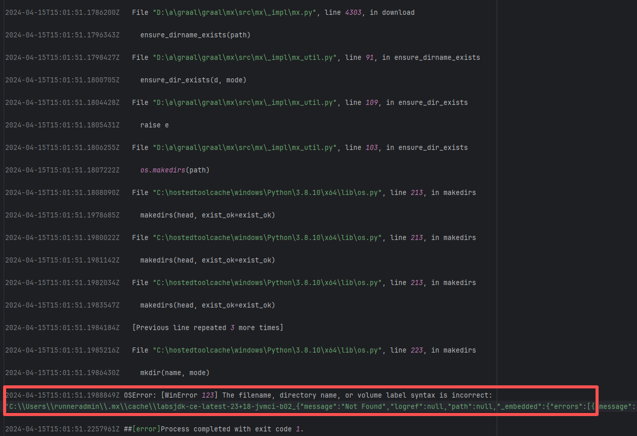 Error: This log shows that the installFrontend task failed during the execution of the Gradle build task. The specific error is related to npm installation, where an EEXIST error occurred, indicating that the cache file already exists, causing the execution to fail to continue. Root Cause: The EEXIST error means the file already exists. When npm tries to create the file /home/runner/.npm/_cacache/tmp/fa3a6aed, it finds that the file already exists. The error is due to previous builds or operations failing to clear the cache, leaving old files in the cache directory. Rerun succeeds after clearing the cache. |