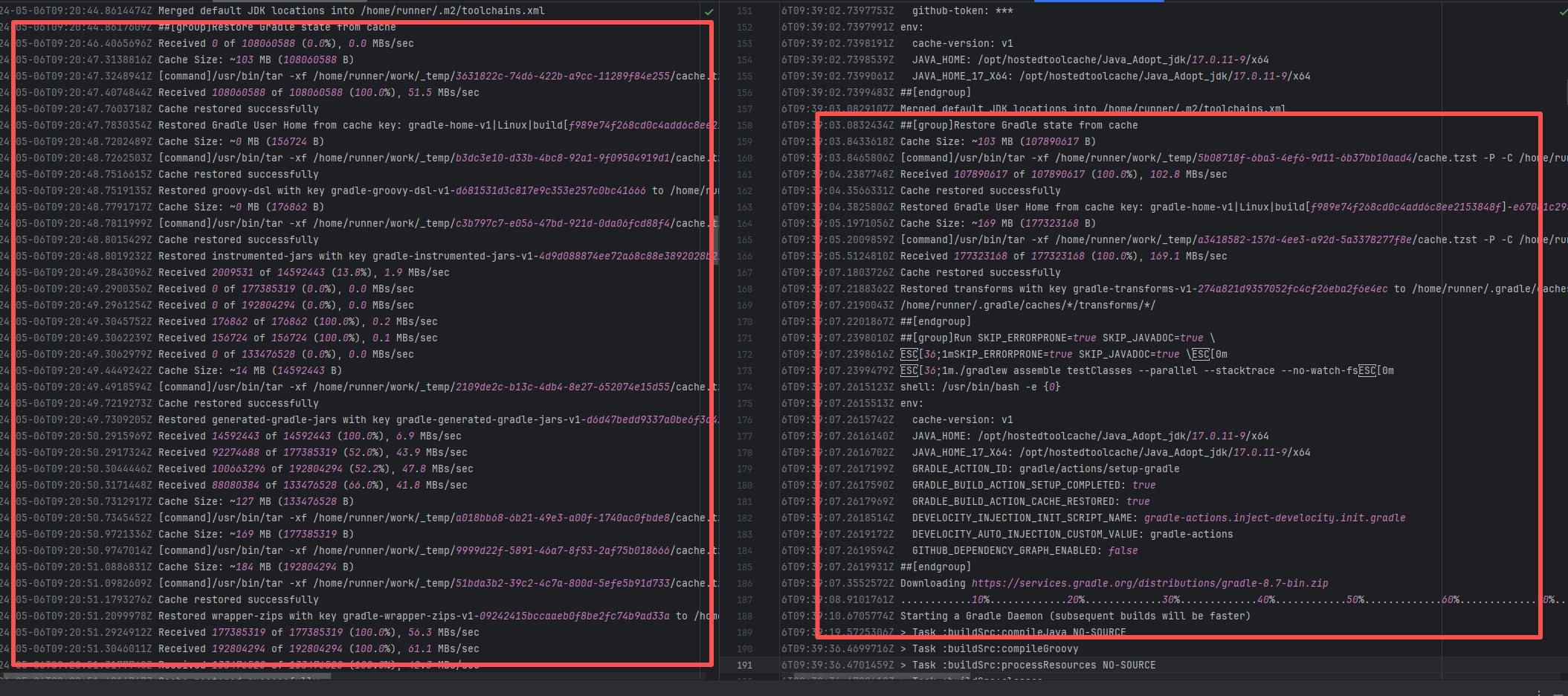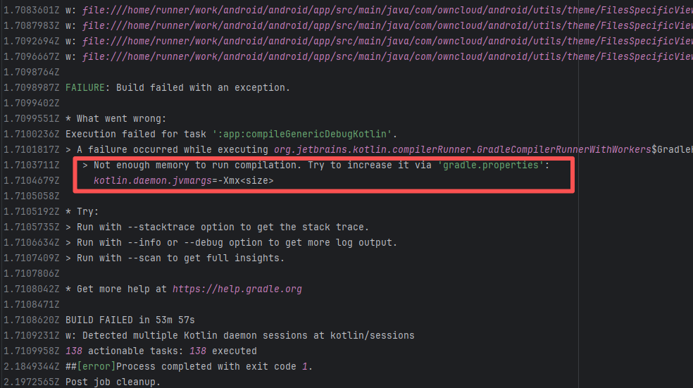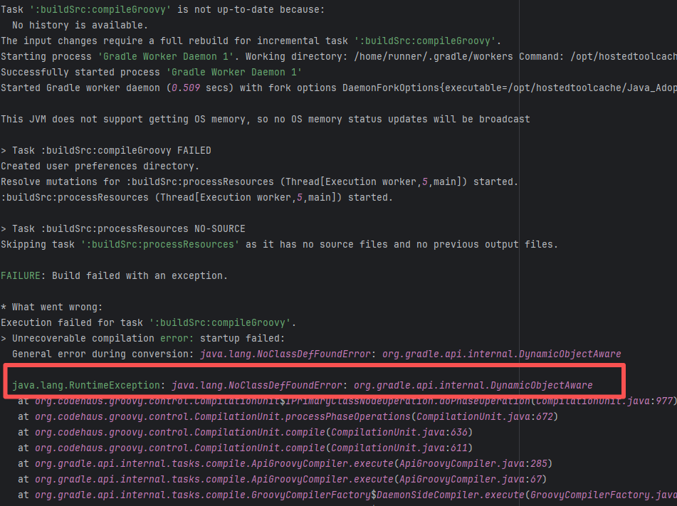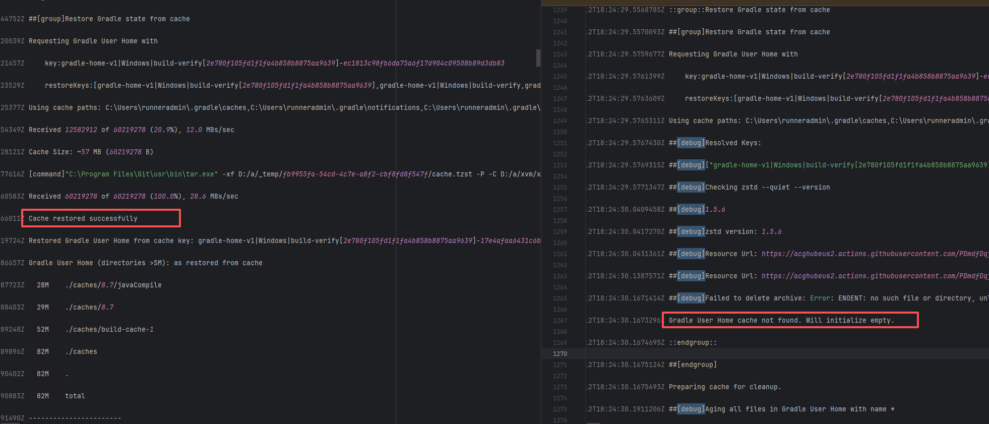 Error: The log shows that the error is the metadata file in the Gradle cache does not exist, which may be caused by a corrupted cache file. Root Cause: "Could not read workspace metadata" indicates that Gradle failed to read the file during the Gradle build process. This file is Gradle's metadata file in the cache. The error is due to some cache corruption making it unreadable. Rerun succeeds after clearing the Gradle cache. |