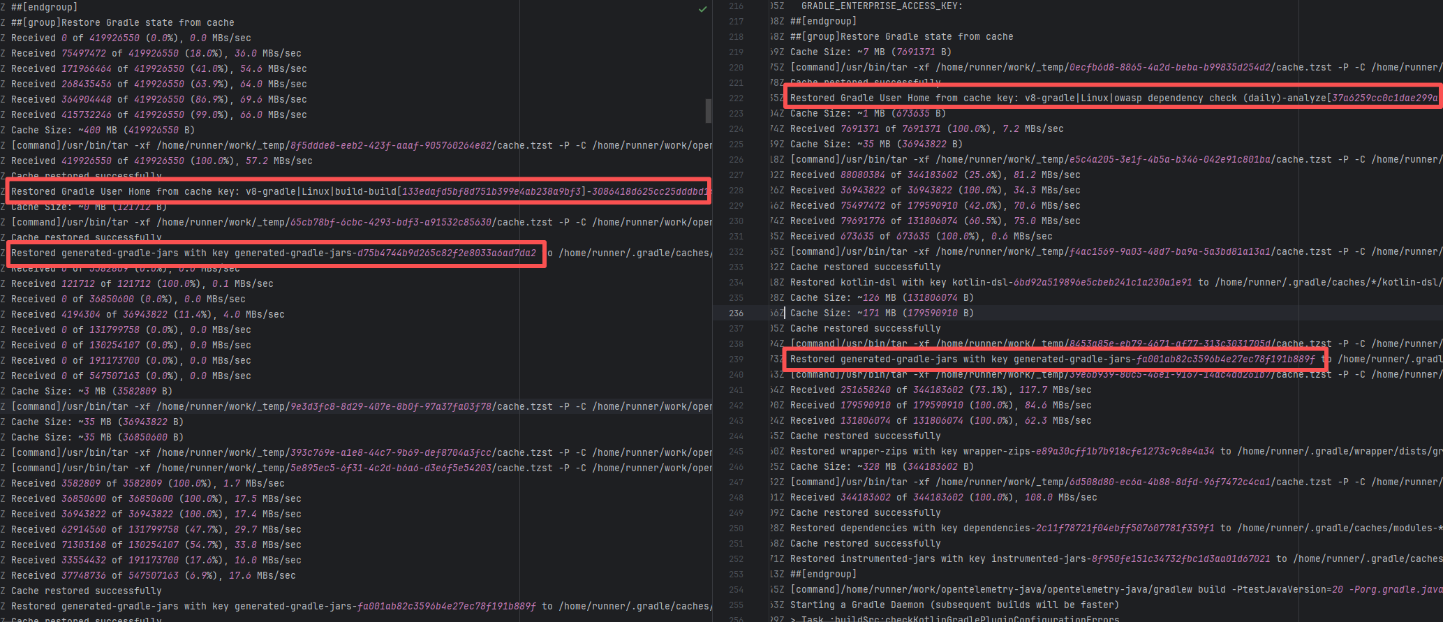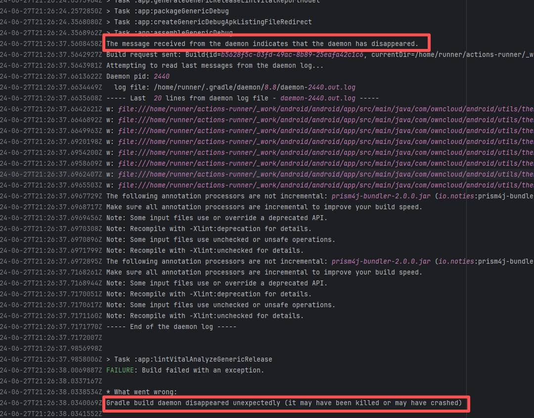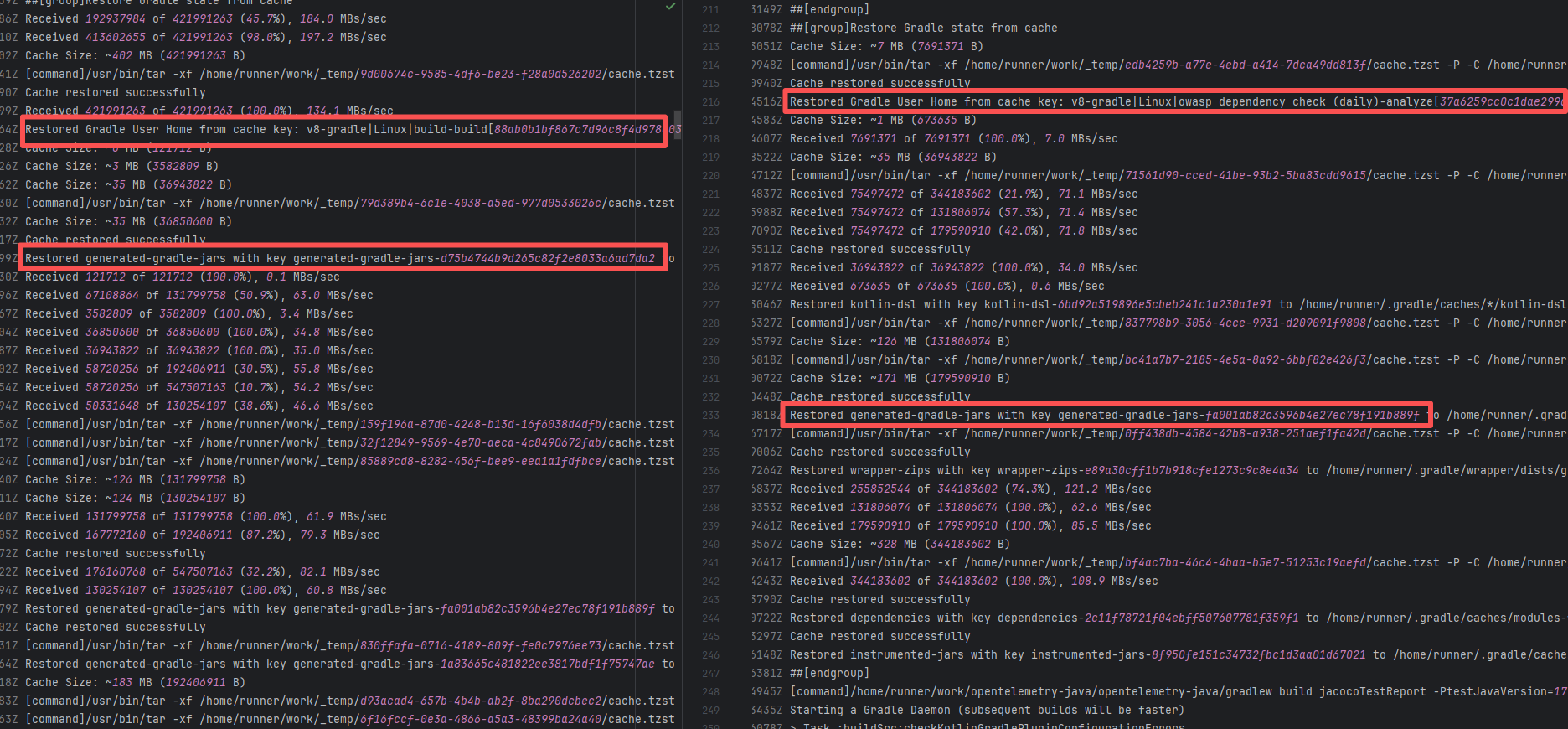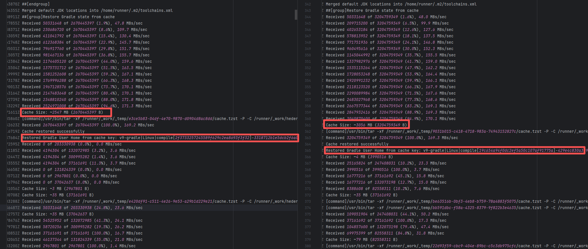 Error: The log shows that the error is the metadata file in the Gradle cache does not exist, which may be caused by a corrupted cache file. Root Cause: "Could not read workspace metadata" indicates that Gradle failed to read the file during the Gradle build process. This file is Gradle's metadata file in the cache. The error is due to some cache corruption making it unreadable. Rerun succeeds after clearing the Gradle cache. |