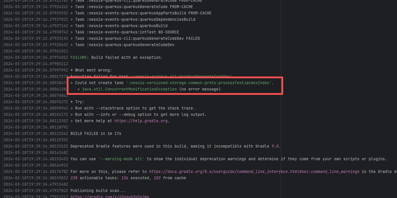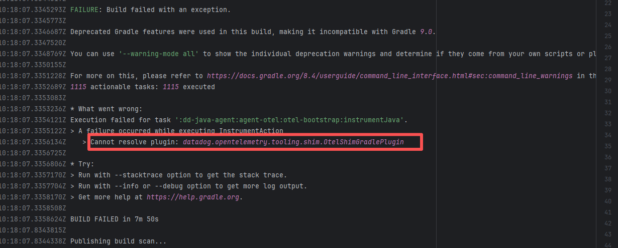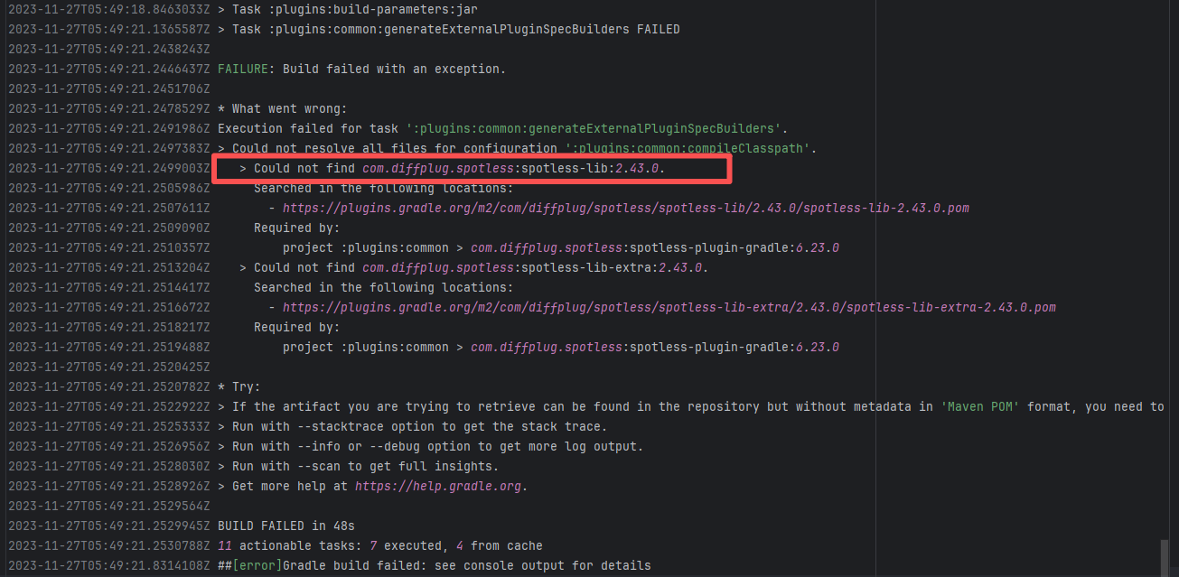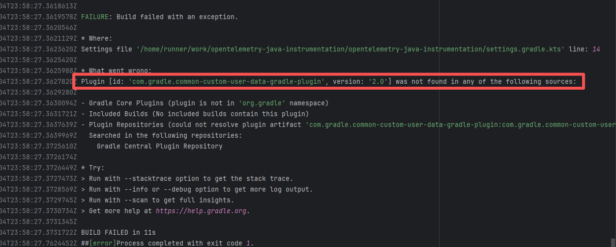 Error: The plugin com.gradle.common-custom-user-data-gradle-plugin:2.0 referenced on line 14 of settings.gradle.kts was not found, because the plugin could not be resolved in the plugin repository. Root Cause: Succeeded after a rerun, which indicates that the error is a transient error caused by network fluctuations. |