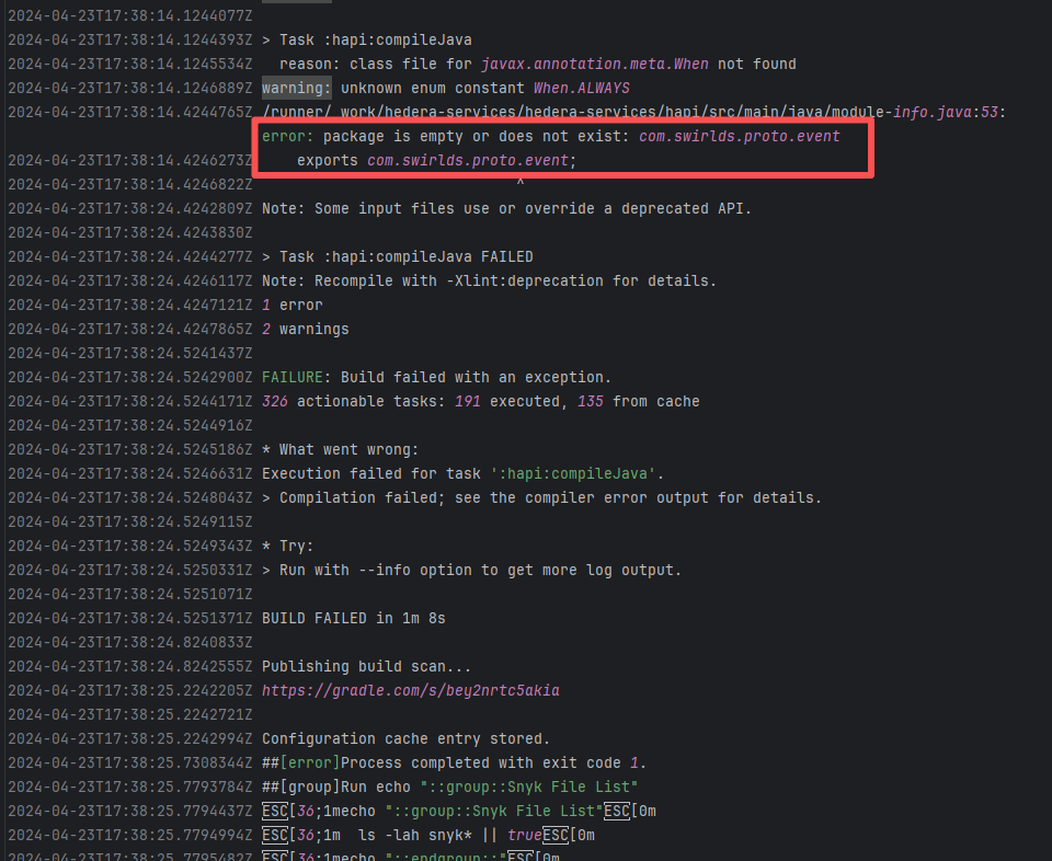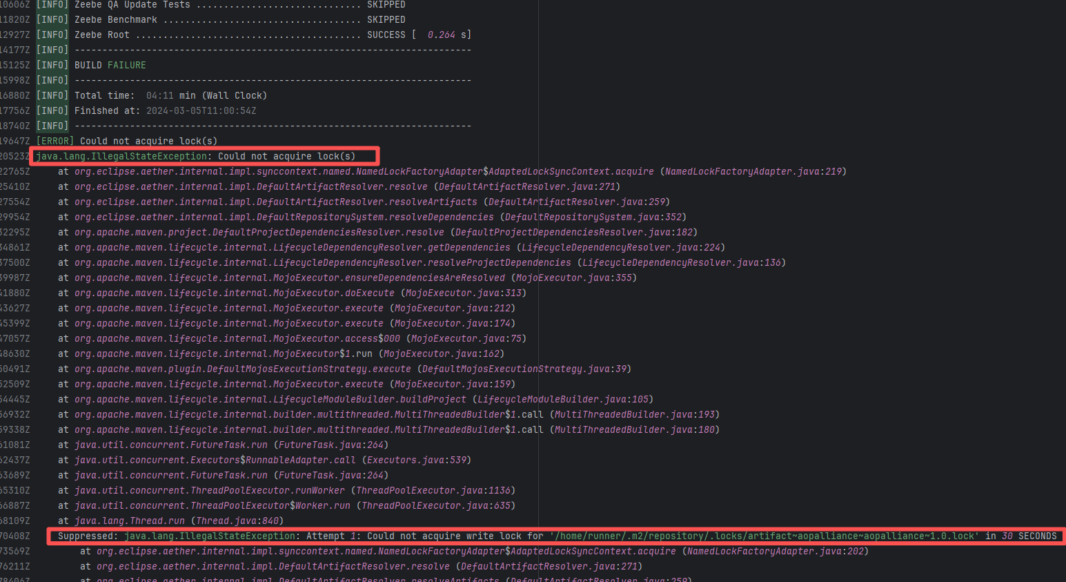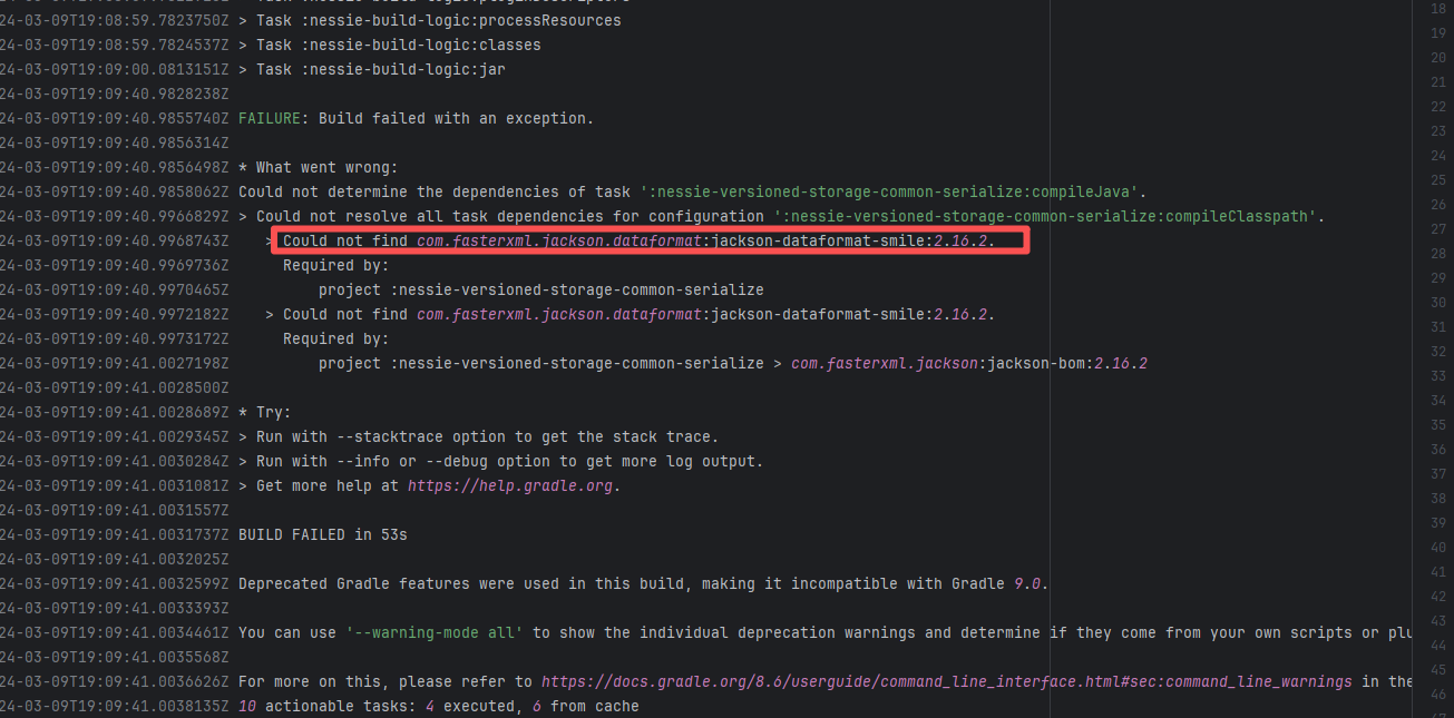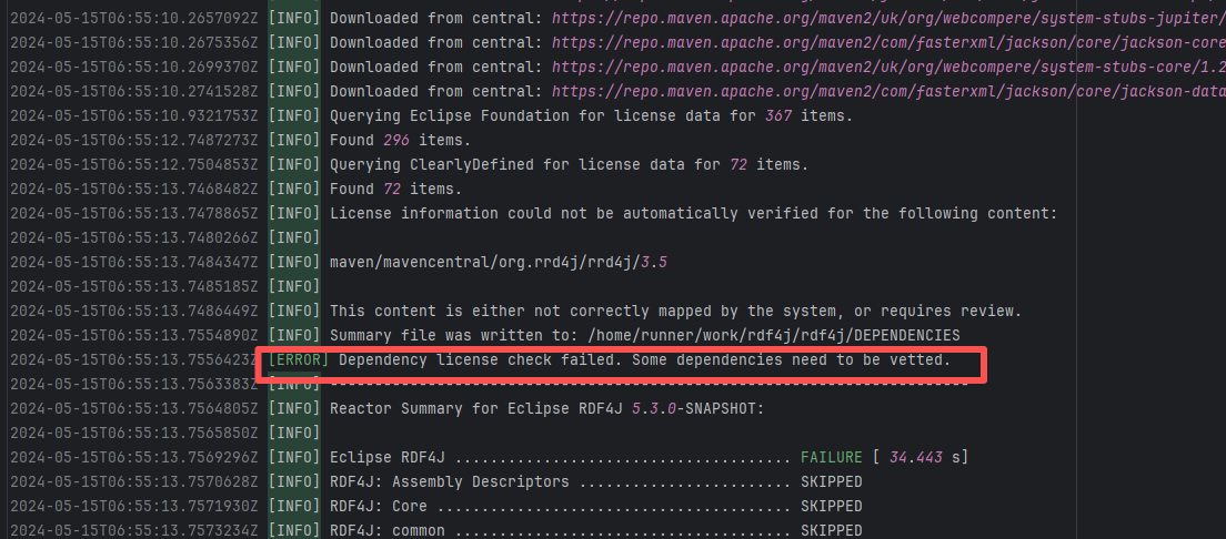 Error: The error message indicates that the build failed because the dependency org.neo4j:neo4j:5.18.0 could not be resolved. The build system tried multiple repository addresses but did not find the dependency file for this version. Root Cause: Checking the repository dependencies revealed that it had not been uploaded before the job execution (3-12). The dependency was uploaded on 3-13, and the dependency downloaded successfully after a rerun on 3-22. |