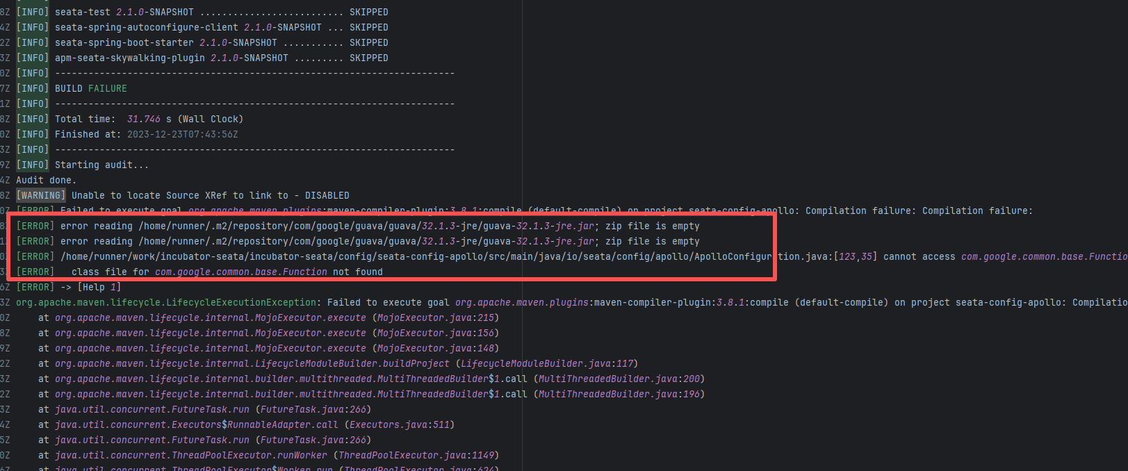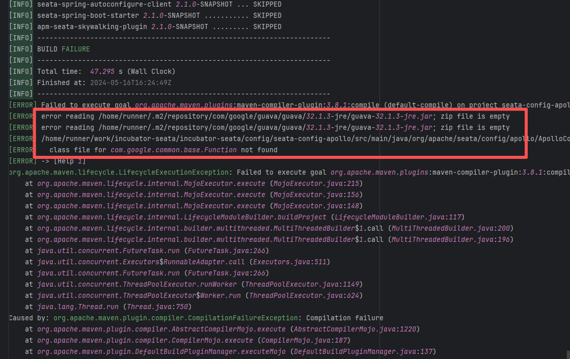 Error: The error indicates incorrect dependency coordinates, and the dependency does not exist in the specified Maven repository. Root Cause: Checking the repository dependencies revealed that it was uploaded (4-15 9:26) before the job execution (4-15 9:40). Therefore, the error is due to repository synchronization delay. The dependency was just uploaded to the official repository, but the mirror had not yet synchronized, leading to the dependency not being found. Succeeded after waiting for a period of time and rerunning. |