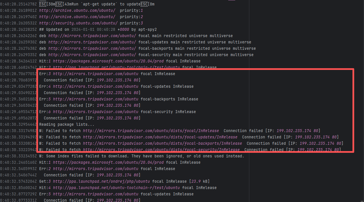 Short-term Fix: Rerun the job; it will automatically succeed after network conditions recover. Long-term Defense: 1. Configure domestic mirror sources to replace official sources; 2. Add a retry mechanism (e.g., retry plugin); 3. Use CDN to accelerate dependency downloads. |
