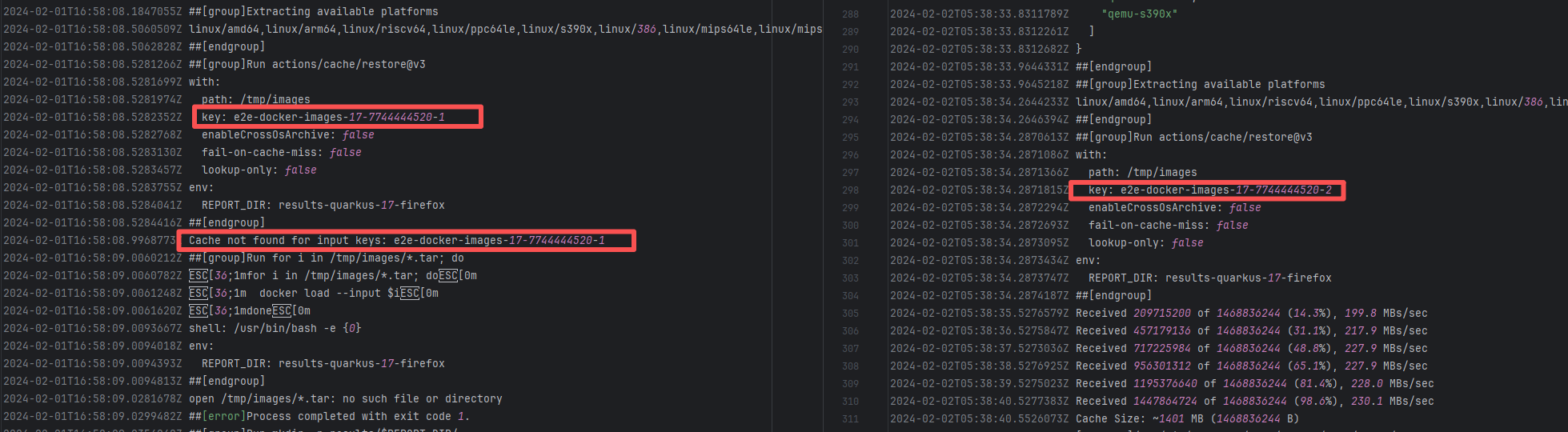 Rerun after deleting previous build results in the cache |