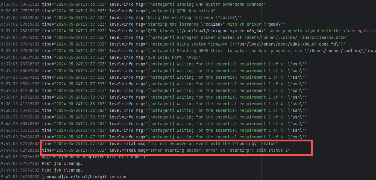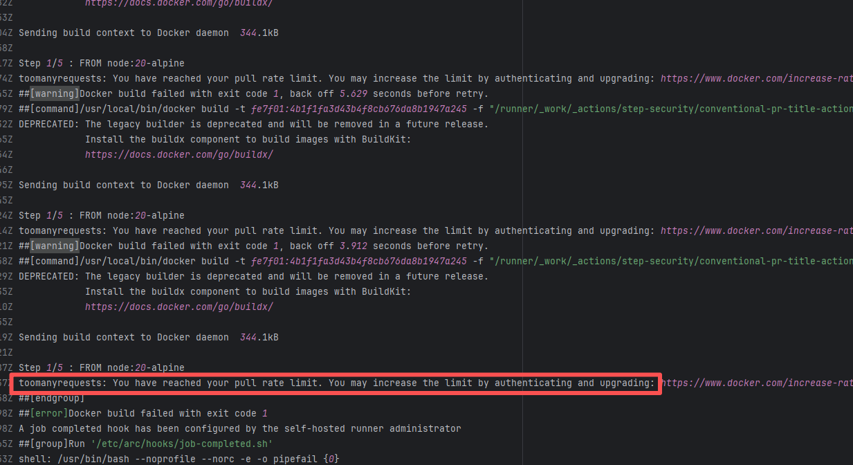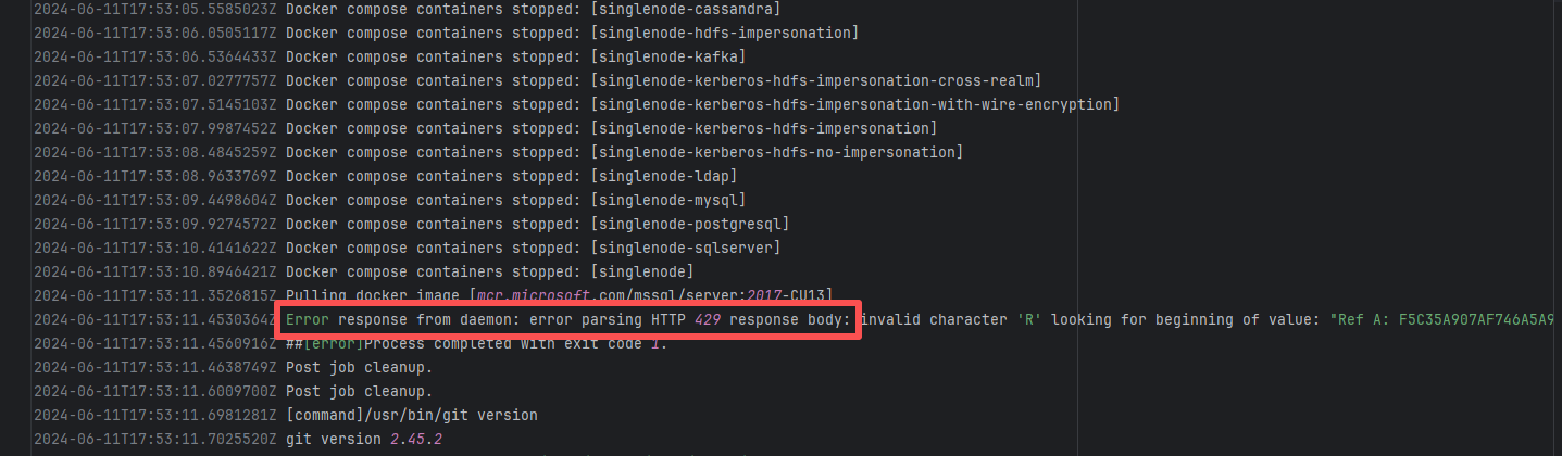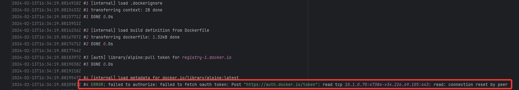 Error: connection reset by peer indicates that Docker attempted to connect to Docker Hub auth Root Cause: The authentication operation was successfully executed after a rerun. |