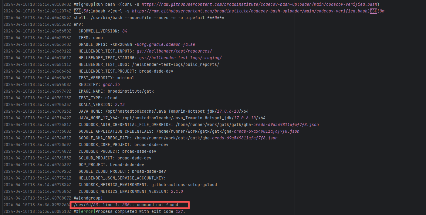 Error: The log error shows that the script cannot recognize 500 as a command. Root Cause: Log analysis reveals that the script directly executes the result of the resource request (a bash file) -> bash <(curl -s https://***.bash). When a download error returns an error code, a "command not found" error occurs. Succeeded after rerun. |